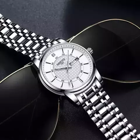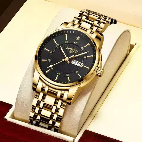 Especialmente fabricado em aço inoxidável de excelentíssima qualidade, lente de cristal de safira e acabamento de quartzo, o luxuoso relógio Nibosi proporciona um aspecto de modernidade e muita elegância para o seu dia-dia